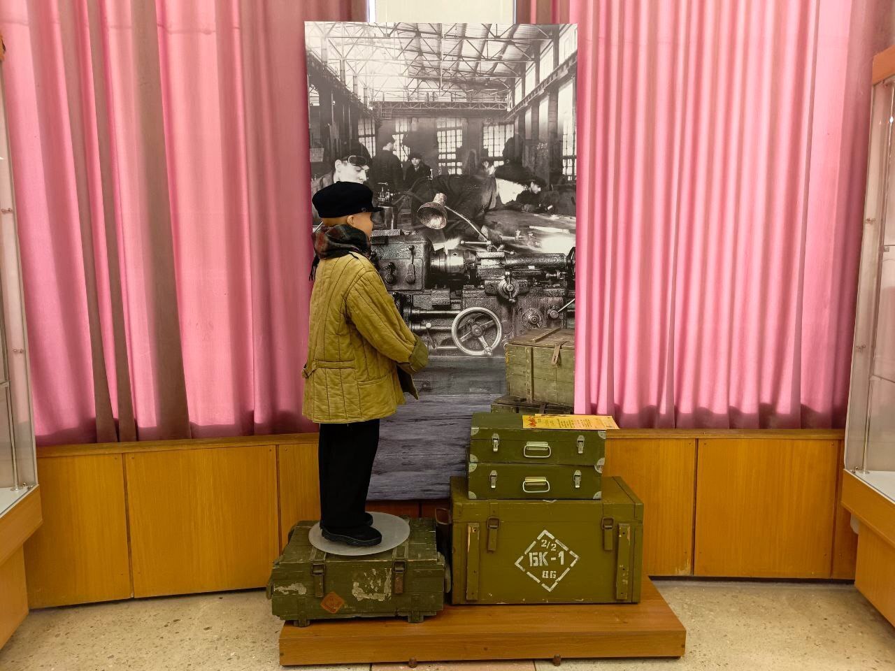 Выставка «Город Киров – фронту» (0+) посвящена самоотверженному труду наших земляков во всех отраслях промышленности и сельского хозяйства, а также работе предприятий города и заводов, эвакуированных в Киров. Особенность экспозиции – большое число специально оформленных инсталляций, которые позволяют зрителю перенестись в заводской цех, где работают дети; в швейный цех, где производят одежду и обувь для солдат; на поля, где заготавливают хлеб; в дома, где готовят к отправке подарки бойцам на фронт.
