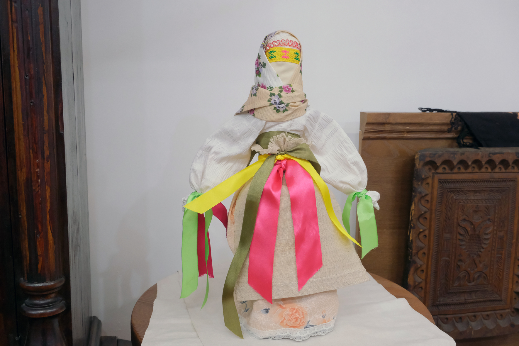 На выставке также создали яркую фотозону, где можно будет сфотографироваться с атрибутами масленичных гуляний.
