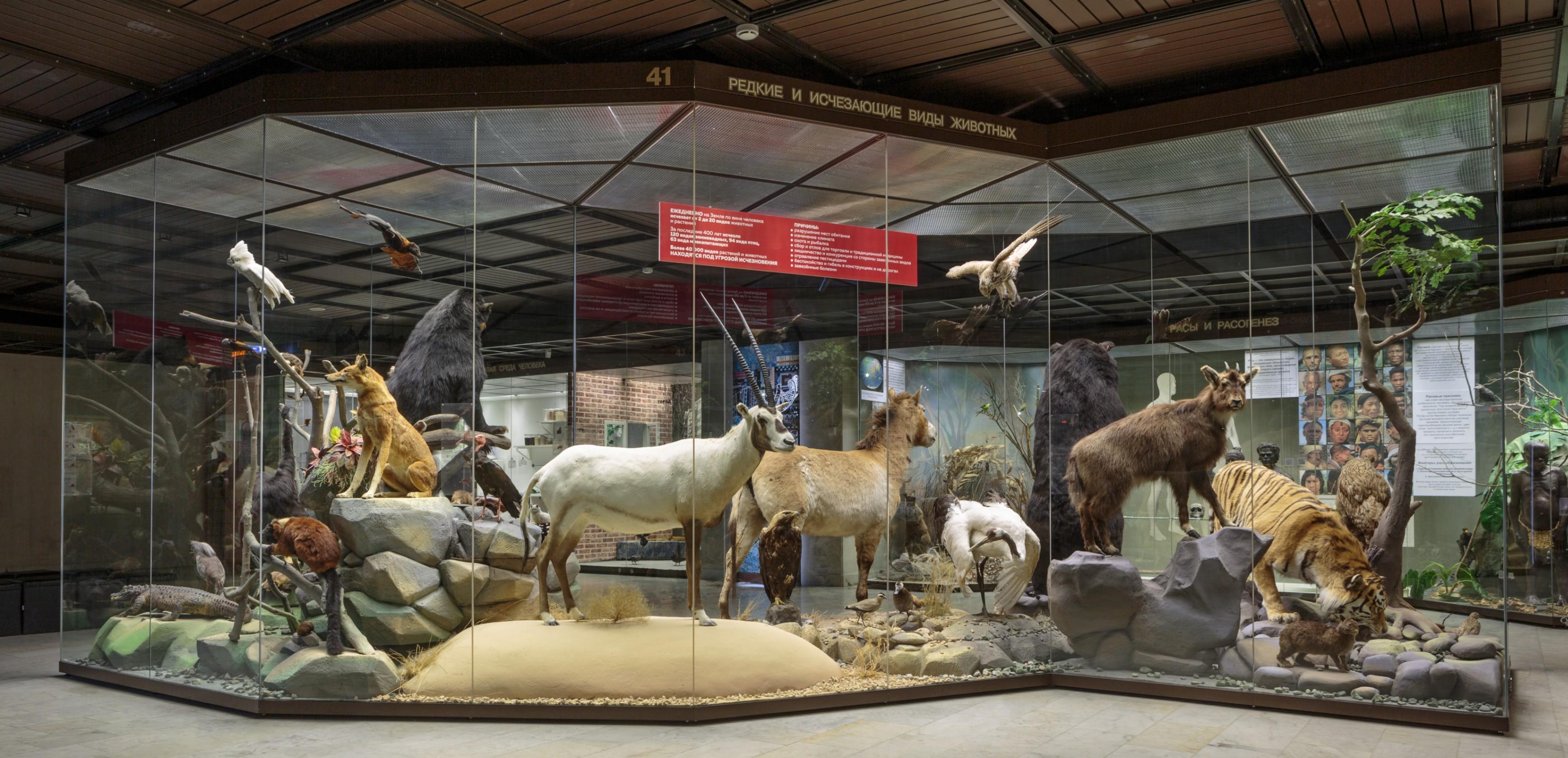 Опираясь на актуальные данные Международной красной книги, музей объединил в одной витрине более 40 видов животных, чье существование из-за разрушительной деятельности человека оказалось под угрозой исчезновения. Слышали ли вы когда-нибудь об императорском дятле или лазающем зайце, крапчатой сумчатой кунице или нелетающей птице кагу? Этих животных практически невозможно встретить в дикой природе, а в музеях каждый такой экспонат – большая редкость. Посетители увидят 42 вида уникальных животных, некоторые из которых уже не встречаются в природе.