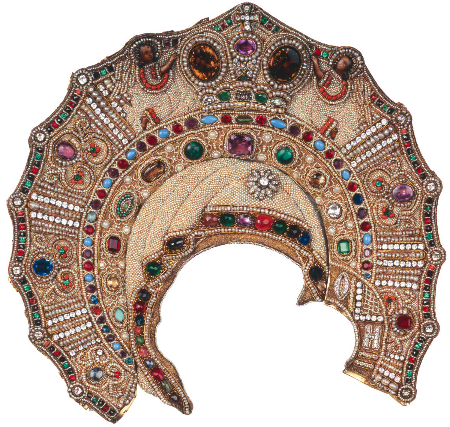 Экспозиция – драгоценнейшая часть собрания Ярославского музея-заповедника. В ней представлены сокровища ризниц ярославских монастырей и храмов, изделия лучших, но оставшихся безымянными мастеров средневековых Москвы, Новгорода, Ярославля, ювелиров Нового времени, вклады царей, местных аристократов и богатых купцов.Отдельный зал посвящен школе ярославских ювелиров периода ее расцвета – XVII века. В это время ярославские серебряники работали наравне с лучшими мастерами других русских городов, создавая произведения в неповторимом и легко узнаваемом стиле. Ярославский стиль – пышный и нарядный, необычайно детальный, с фантастическими и затейливыми орнаментами. В собрании Ярославского музея-заповедника сохранились сотни виртуозных произведений ярославского ювелирного искусства, лучшие из них представлены на экспозиции.В залах можно увидеть блестящие образцы ткацкого искусства крупнейших центров Средневековья – Италии, Ирана, Турции, Франции, – драгоценные русские ткани XVIII–XIX веков. Здесь представлены произведения драгоценного лицевого шитья, среди них – изделия прославленных светлиц «именитых людей» купцов Строгановых середины XVII века и менее известных, но не уступающих им по уровню местных мастерских.Также на выставке представлены орнаментальное шитье и низание – пышные оплечья священнических облачений, ризы икон, оклады евангелий, украшенные перламутром и жемчугом, драгоценными камнями и цветными стеклами-стразами, бисером и стеклярусом.