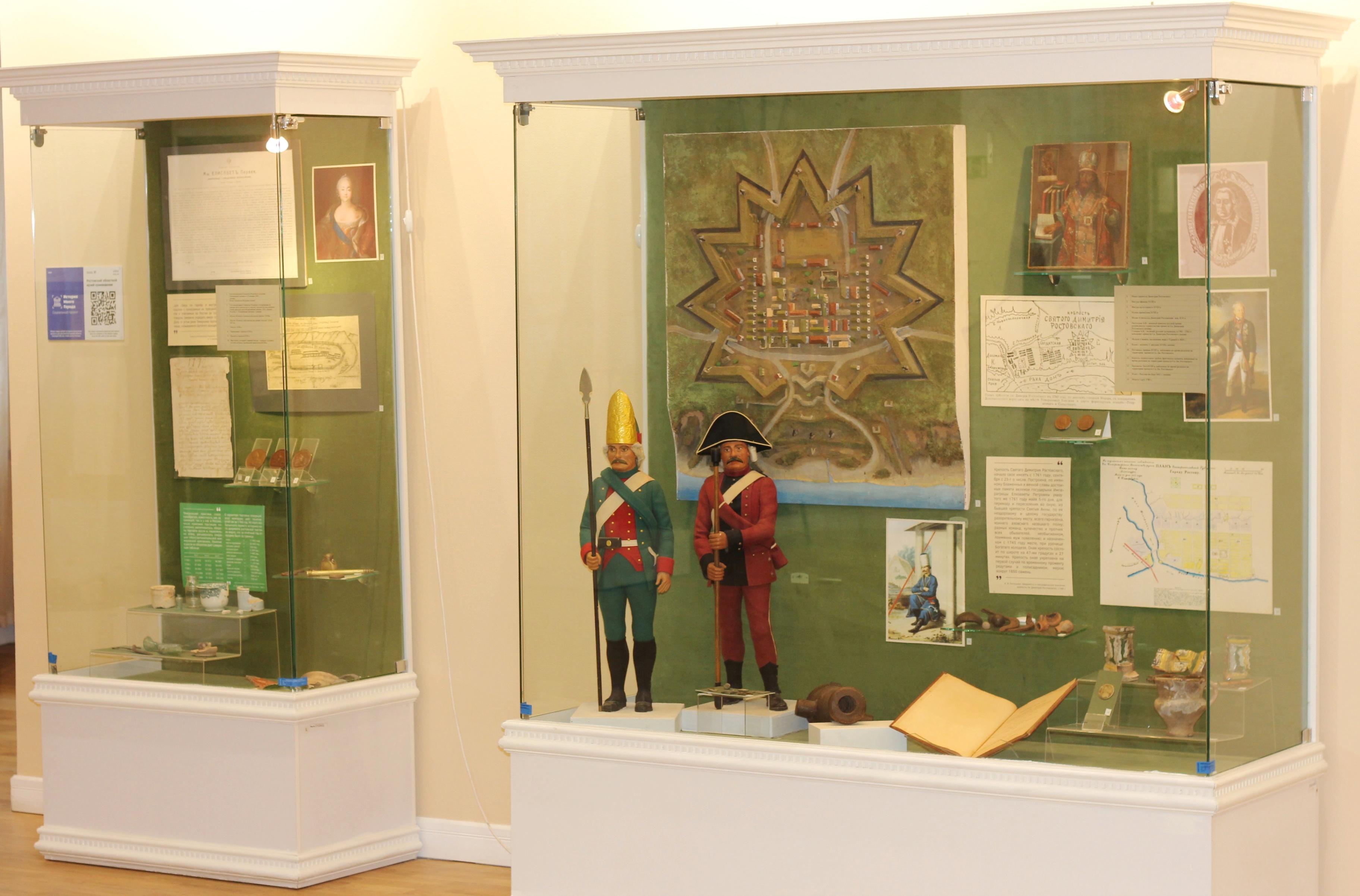 Предлагаются 6 временных выставок на различные темы: «Реликвии донского казачества» (кавалерийское и пехотное оружие, предметы традиционного быта, трофеи, награды, знамена).«Старый Ростов» (история города от XVIII до начала XX в.).«Пролетарий, на коня!» (Гражданская война на Юге России). «Оружие Победы в сражениях Великой Отечественной войны (1941–1945).«Время надежд и свершений (повседневная жизнь Донского края 1950-х гг.)».«Природа Дона» (чучела представителей современной фауны). Выставки раскрывают историю Донского края.