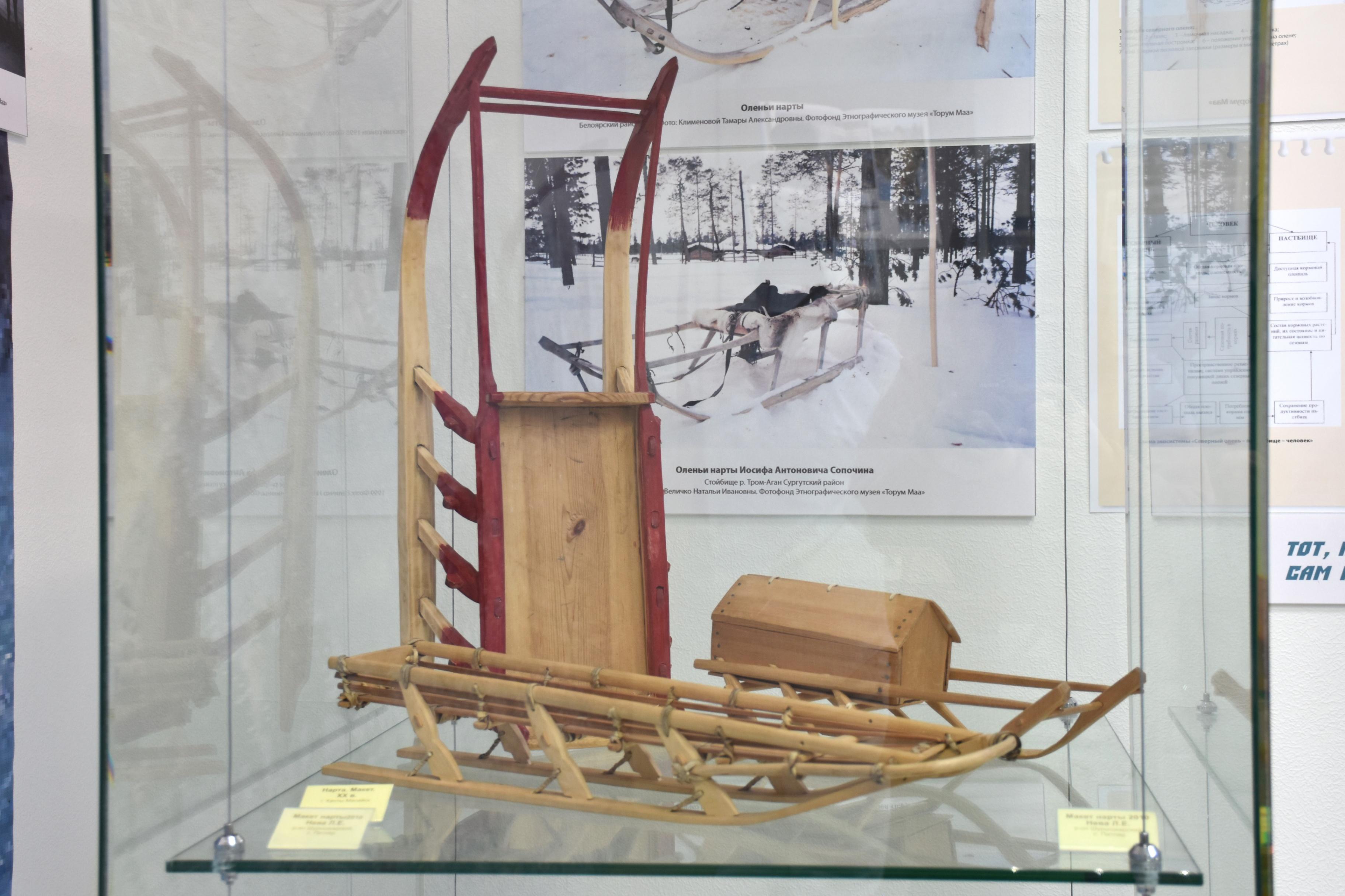 Олень для коренного жителя, в современном понимании, значит очень многое: еда, кров, одежда, транспорт, предмет торговли и подношения для Духов. Как и когда произошло одомашнивание оленя, сказать трудно. Древние археологические находки, относящиеся к оленьей упряжке, имеют возраст 2,5 тыс. лет. Образвыс оленя представлен в устном народном творчестве, орнаментальном искусстве и в игровой культуре обских угров. Посетители смогут познакомиться с многогранной ролью оленя в традиционной культуре нардов ханты и манси. В экспозиции выставки представлены: национальная одежда, предметы оленьей упряжи, изготовленные с использованием оленьего меха покрывала и пр. Центральный элемент полноразмерная нарта, укрытая мягкой оленьей шкурой, – настоящий образец традиционного транспортного средства обских угров. Приятное и эксклюзивное дополнение мини-выставка работ Натальи Жеманской, художника-графика из Ханты-Мансийска. Сюжеты, где главный образ – олень, вдохновивший автора на создание серии акварельных работ.