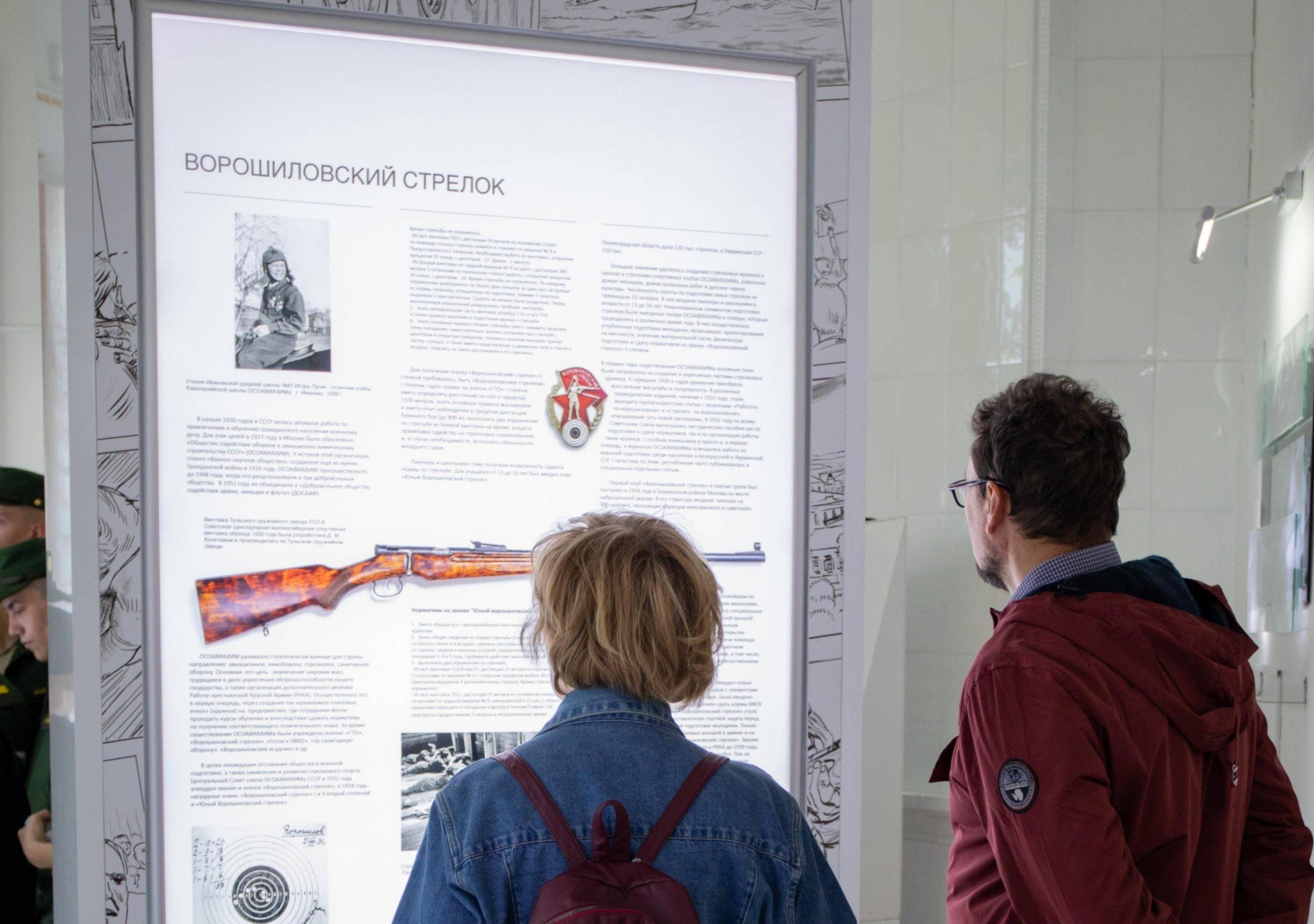 В основе экспонирования – визуальные элементы художественных традиций советского плаката, грамоты спортивных и физкультурных комплексов довоенного периода, двусторонние стенды с анимированными эпизодами о героях Великой Отечественной войны, а также историко-биографические изображения. Участники познакомятся с легендарными судьбами людей, вписавших строки в историю страны. Присутствующие раскроют секреты шифрования и кодирования, разгадают кроссворды, выполнят интерактивные задания и увидят редкие архивные кадры из жизни героев.