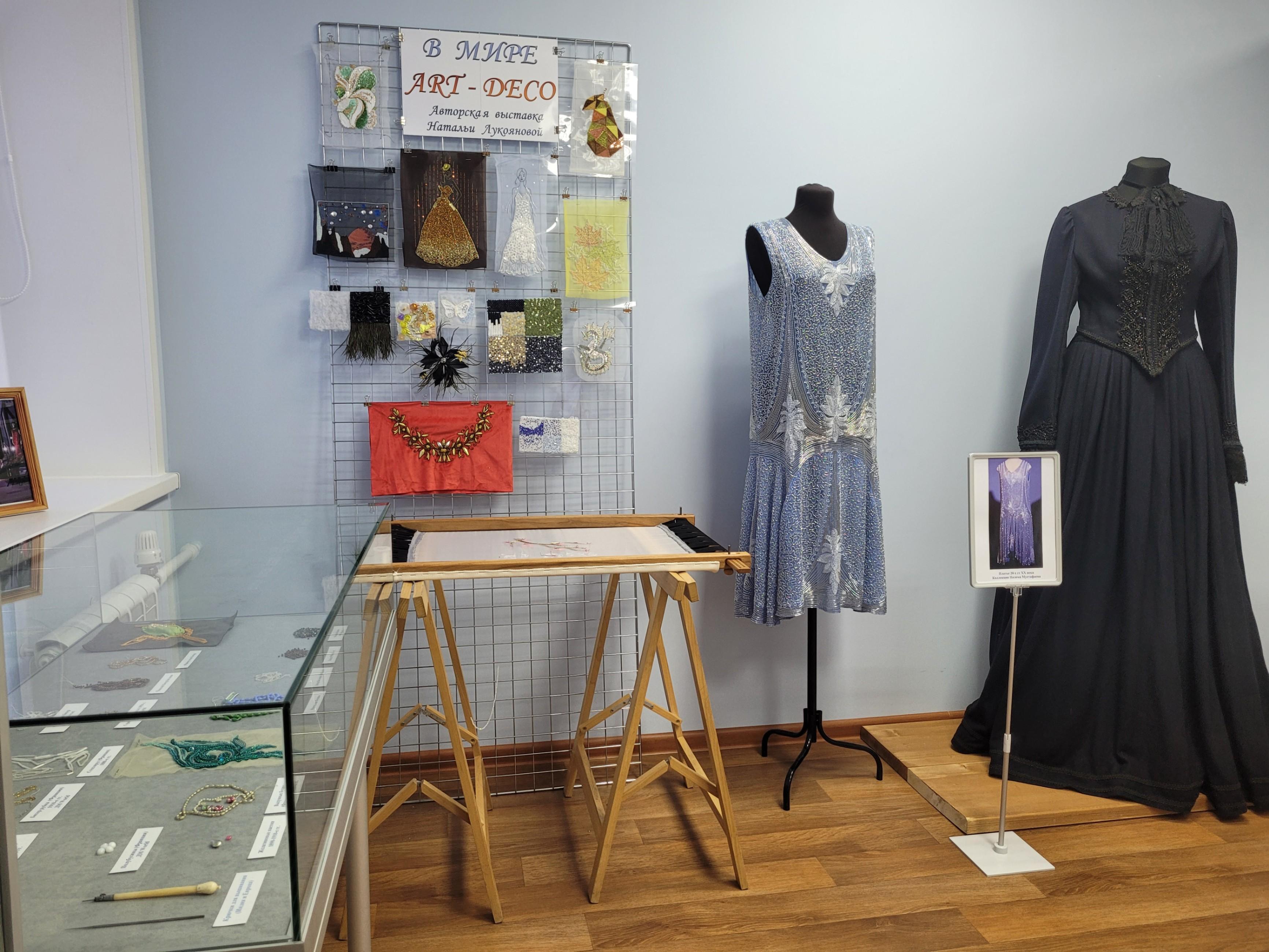 Новосильский краеведческий музей приглашает посетить выставку мастера вышивки и декора Натальи Лукояновой. Ее творчество тесно связано с эпохой модерна и украшением одежды и аксессуаров в стиле ар-деко. Начало ХХ века отметилось не только войнами, революциями, социальными потрясениями, но и творческим поиском. Формировались новые стили – в одежде, архитектуре, декоративно-прикладном искусстве. Одним из них стал художественный стиль ар-деко – в переводе с французского «декоративное искусство». Он характеризуется сочетанием этнических элементов и современных решений, повторяющимися геометрическими формами, неяркой, но многоцветной палитрой. Проявлением стиля в моде 1920-1930-х годов стало использование богатого декора одежды в виде вышивки и аппликации. Бисер, стеклярус, пайетки, ленты и кружево, перья и бахрома – выбор украшений был весьма разнообразен. Многие из элементов стиля ар-деко до сих пор применяются модельерами при создании коллекций одежды. Одной из техник, характерных для ар-деко, является так называемый «люневильский крючок». Этот способ вышивки, получивший распространение во французском городе Люневиль, как нельзя лучше подходил для украшения тонкой легкой ткани узорами из бисера и стекляруса. Вышивальщица работает крючком с обратной стороны полотна, формируя тамбурный шов, который фиксирует декоративные элементы. Наталья Лукоянова в совершенстве освоила эту редкую, но интересную технику, образцы которой представлены на выставке. Жемчужиной экспозиции является реконструкция платья 1920-х годов, расшитое стеклярусом в полном соответствии с оригиналом. Ждем всех желающих прикоснуться к волшебному миру ар-деко.